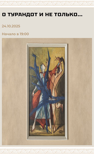 Лариса Кузьменко приглашает в увлекательное путешествие! На лекции «О Турандот и не только...» она расскажет, как восточные сюжеты покоряли европейскую сцену. Как история китайской принцессы стала великой оперой Пуччини? Какие ещё шедевры театра и балета родились из диалога культур? Как Поднебесная и Восток вдохновляли хореографов и композиторов? Почему их интерпретации стали шедеврами? На лекции посетители смогут открыть для себя удивительную миграцию идей и образов, подарившую миру вечные произведения. Лекция является частью партнёрской программы Государственного Музея Востока и XI Международного фестиваля вокальной музыки «Опера Априори». Билеты можно приобрести как в сам лекторий в здании музея, так и на онлайн-трансляцию лекции: Orientmuseum.ru/events/2025/